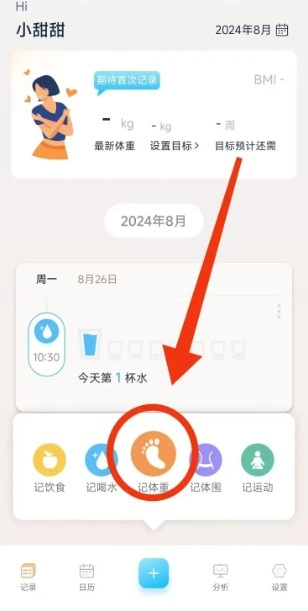 3、于打开的功能选项栏里,点击选择“记体重”选项图标。