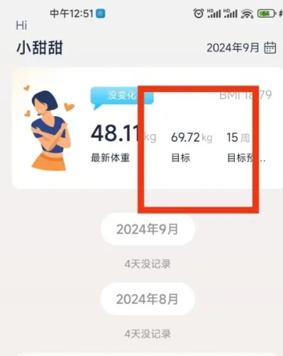 3、设置完成后回到首页,即可在界面上直接看到已成功设定的目标体重。