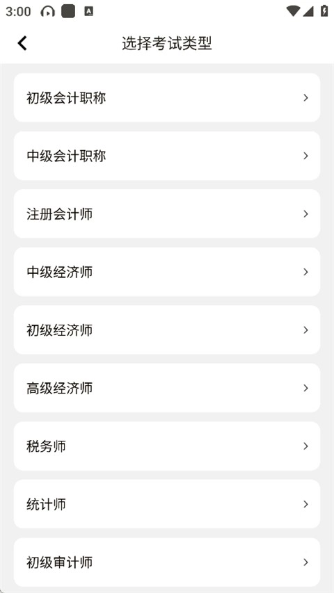 2. 完成登录操作后,从各类会计考试中挑选你计划备考的类型,像初级会计、中级会计或者会计从业资格考试等等。