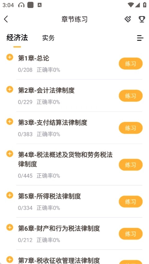4、在首页能够进入“章节练习”模块,借助章节列表开展系统练习,同时查看自身答题情况,涵盖正确率以及错题记录,以方便查漏补缺。