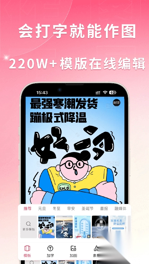 只需挑选模板,接着改改文字、换换图片,就能轻松完成各类场景图片的制作。操作极其简单,只要会打字就可以上手使用。