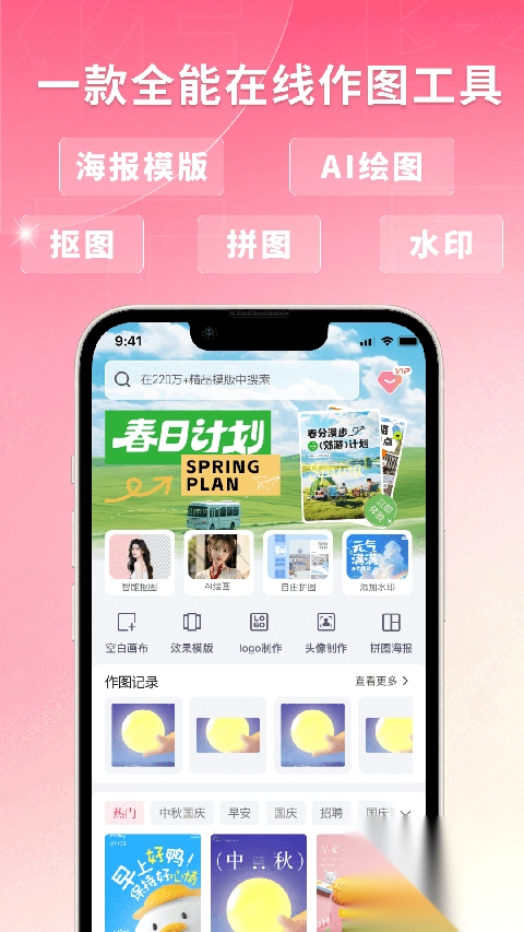 4超40万原创图片模板,内容覆盖手机海报、名片、营销长图、电商banner、淘宝店铺首页、公众号封面、邀请函、手机壁纸、每日一签、LOGO设计等多样类型,每日持续更新,适配各类不同场景需求。