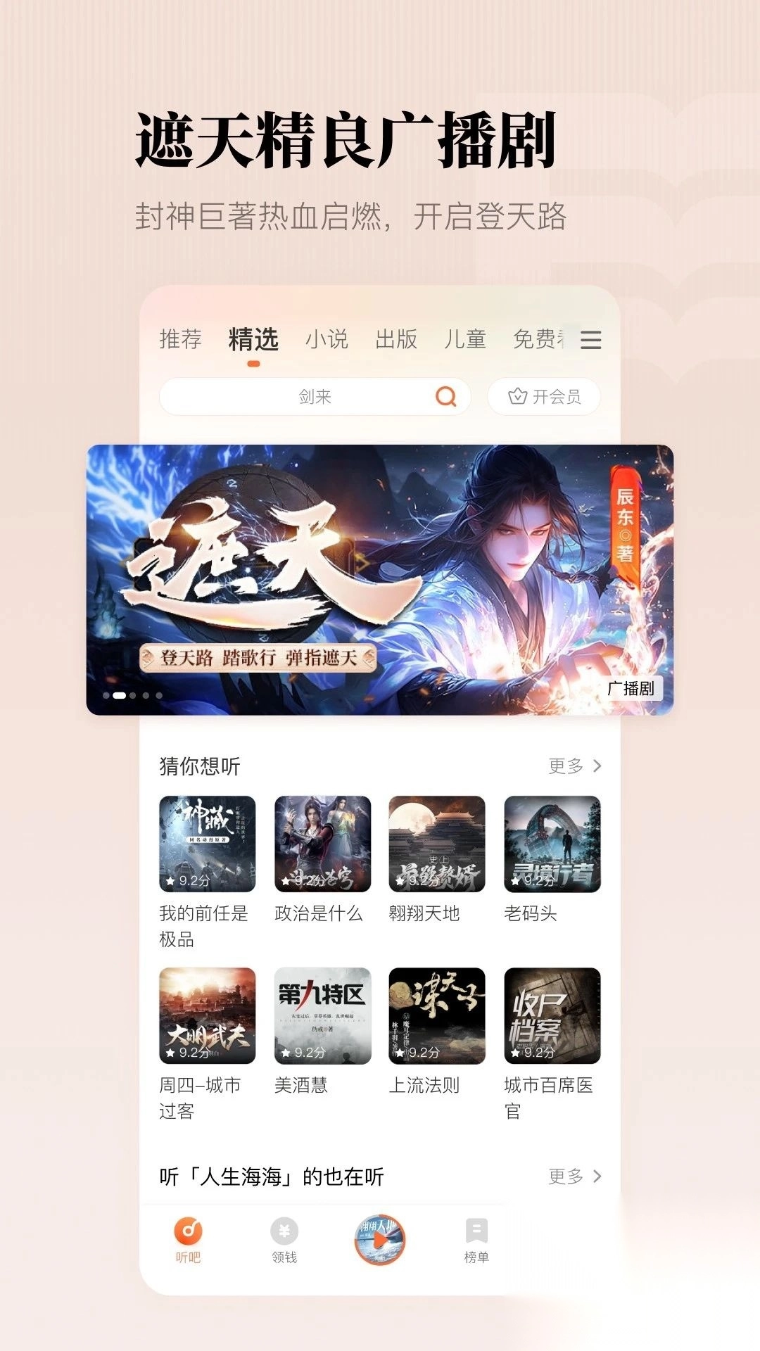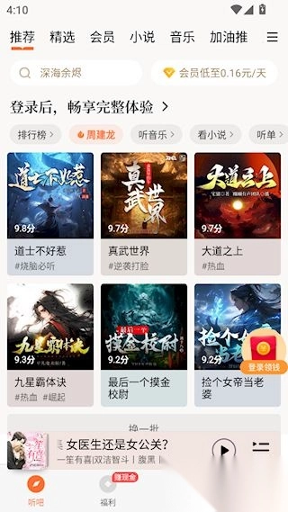 全网独家畅听!《盗墓笔记》《世子无双》《藏海花》《屌丝道士》,还有海量好书任您随心挑选聆听。