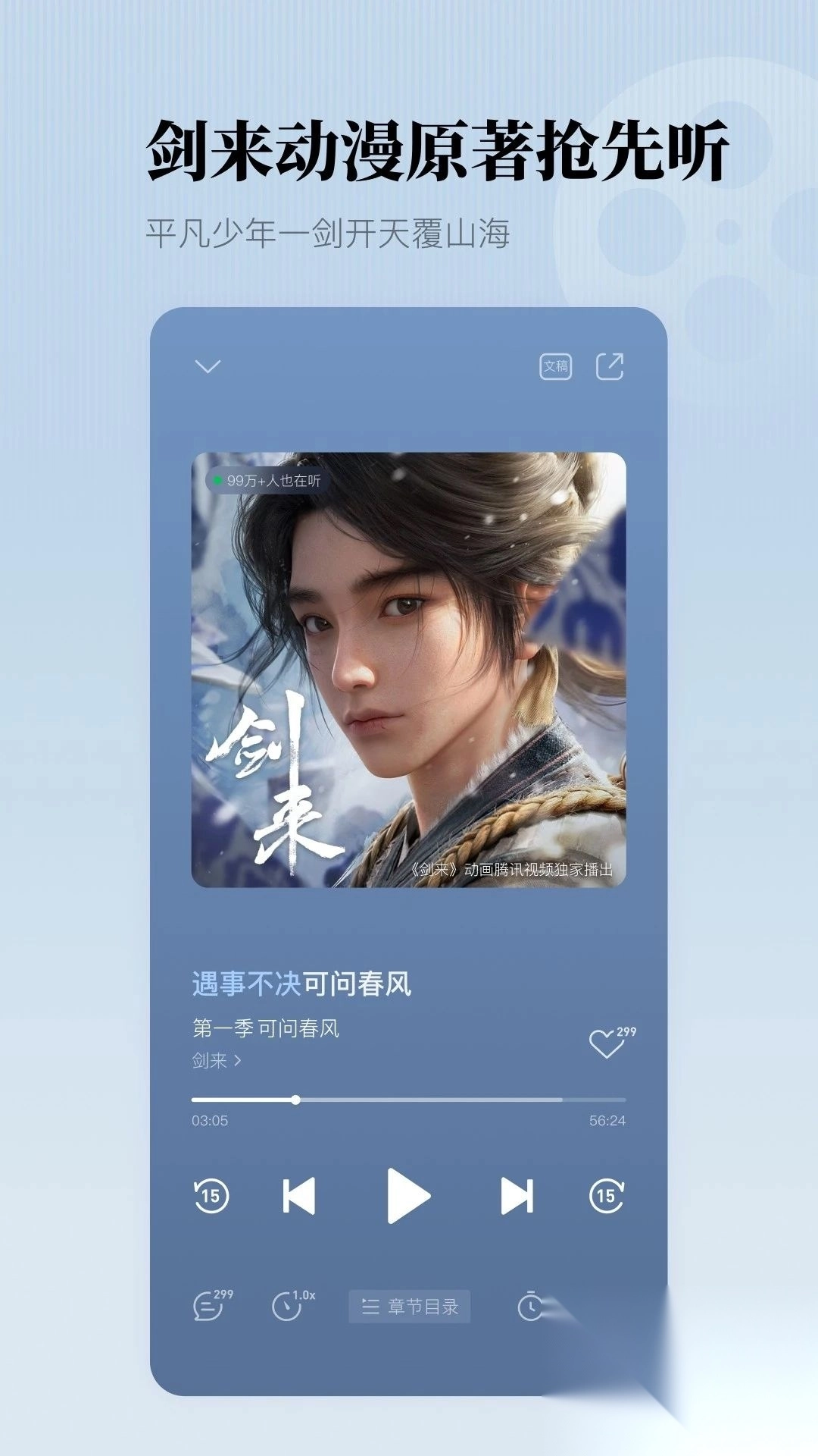 快来懒人听书抢先收听动漫《仙逆》《剑来》以及影视《雁回时》《凡人修仙传》的原著,直达精彩大结局!