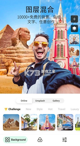 5. 海量背景与贴纸:拥有众多免费背景,运用这些背景能让你的图片呈现全新风貌;还有大量免费贴纸,贴上贴纸可让你的图像更添趣味。