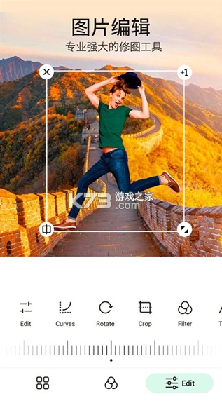 6. 即刻开启无拘无束的创作天地,从此,工具不再成为你创意的桎梏。丰富多样的主题图形,为你的照片增添绚丽色彩。拥有强大编辑功能,调色、剪裁、加字美化一步到位。
