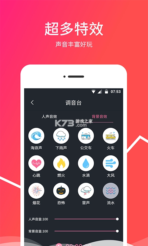 2. 录音变声,开启一种全新途径,让你的声音瞬间妙趣横生。为声音增添多样特效,无论是可爱萝莉音、沧桑大叔音,还是搞怪逗趣音、惊悚恐怖音,改变声音,就从当下启程。