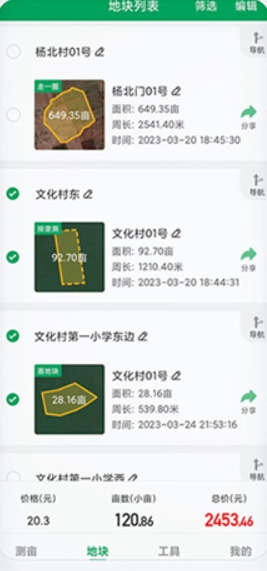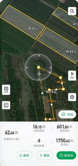 1. 具备高精度农田面积测量的支持能力,可适应复杂地形状况,给出精确的测量数据。