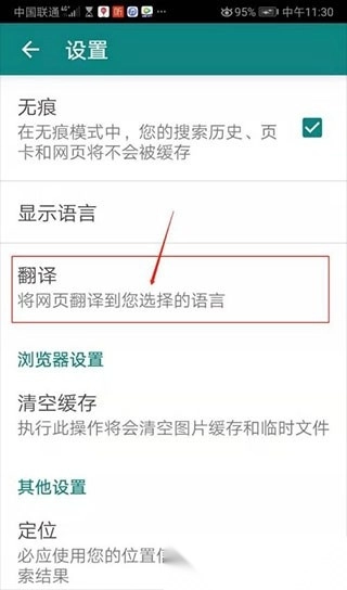 3. 随后进入设置界面,点击翻译选项。