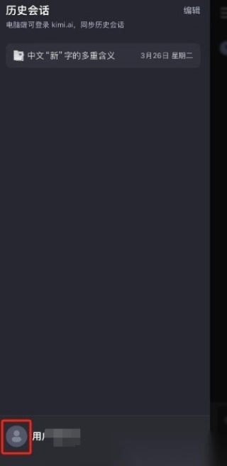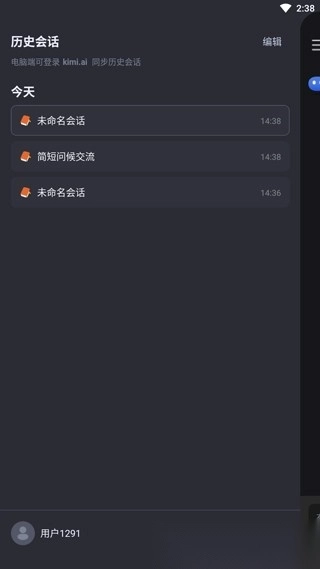 4. 点击页面左上角,即可打开菜单,在此菜单中能够查看历史对话,还能进行账号切换。