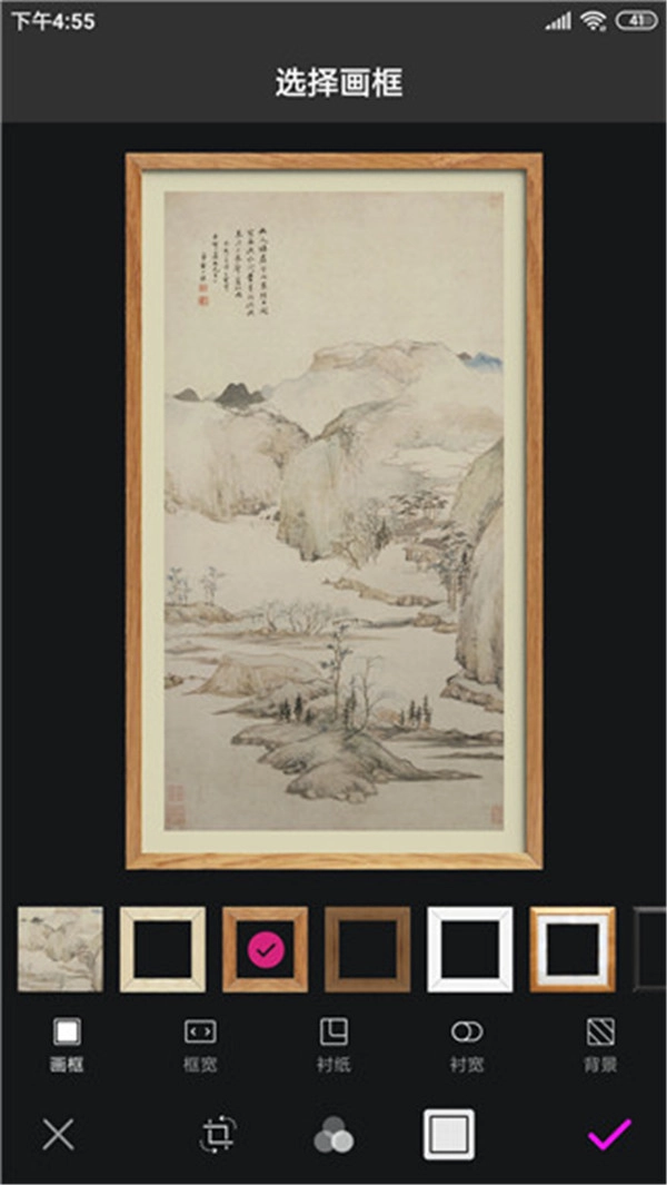 4、作品会自动进行切边处理,将杂乱的背景去除。同时,提供多种画框与内衬供您选择,以此提升作品的品质。