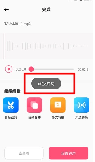 转换完成后可继续剪辑、合并、压缩,或设置为手机铃声。
