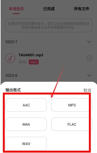 可选择MP3、AAC、M4A、WAV、FLAC等格式进行转换。