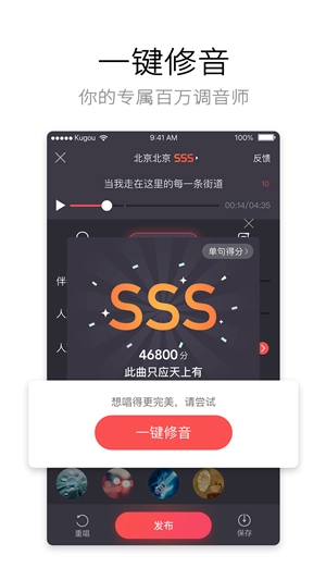 2. 提供高品质正版伴奏,所有作品统统免费,让你尽情畅享优质的K歌体验。