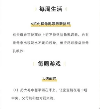 借助“育儿周周看”功能,给宝宝给予恰当的照料与游戏陪伴方面的建议。