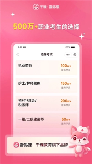 雪狐狸是一款专注于护士考试的护理知识教育平台。该平台涵盖了护理领域的全部课程,在这里,你不仅能学到书本上的护理知识,还能接触到实际操作中的各类细节,全方位掌握和护理相关的所有内容。倘若你有志于投身护理行业,不妨尝试一下雪狐狸护考软件。而且,平台还设有督学计划,每天都会督促你学习,助力你高效备考。