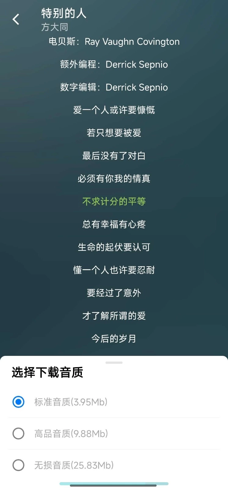 5. 在歌曲详情页面,点击按钮,挑选合适的音质(例如无损高品质音源),随后等待歌曲处理完成。完成后的歌曲能够在离线模式下播放,从而节省流量。