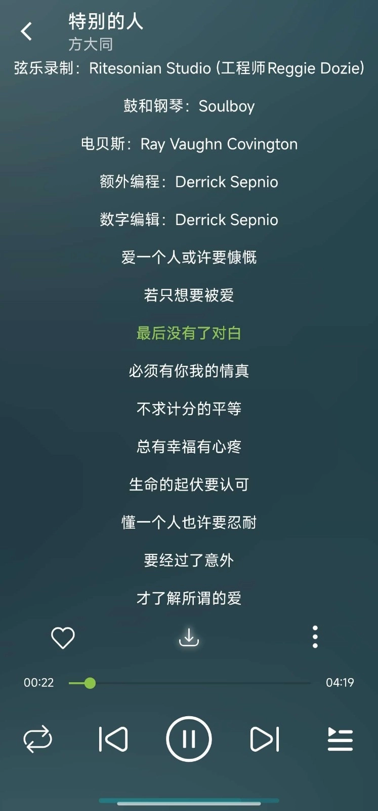 4. 寻找到想听的歌曲,点击进入该歌曲的详情页面,再点击播放按钮就能播放音乐。播放界面具备歌词显示、音质切换以及循环播放等功能。