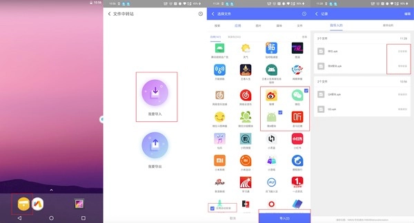 进入虚拟机后,点击黄色文件夹,选择“我要导入”选项,挑选自己所需使用的应用,勾选左下角的“应用自动安装”,接着点击右下角的“导入”按钮,等待安装成功即可。另外,也可在虚拟机的浏览器中自行安装应用。