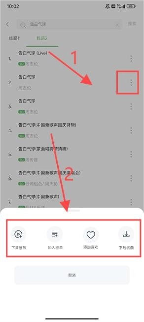 6、点击歌名后的小三点标志,可将歌曲添加到歌单、收藏等。