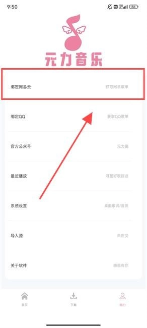 3、进入设置界面,点击“绑定网易云”,依据自身需求挑选绑定方式,随后就能获取并导入网易云歌单。