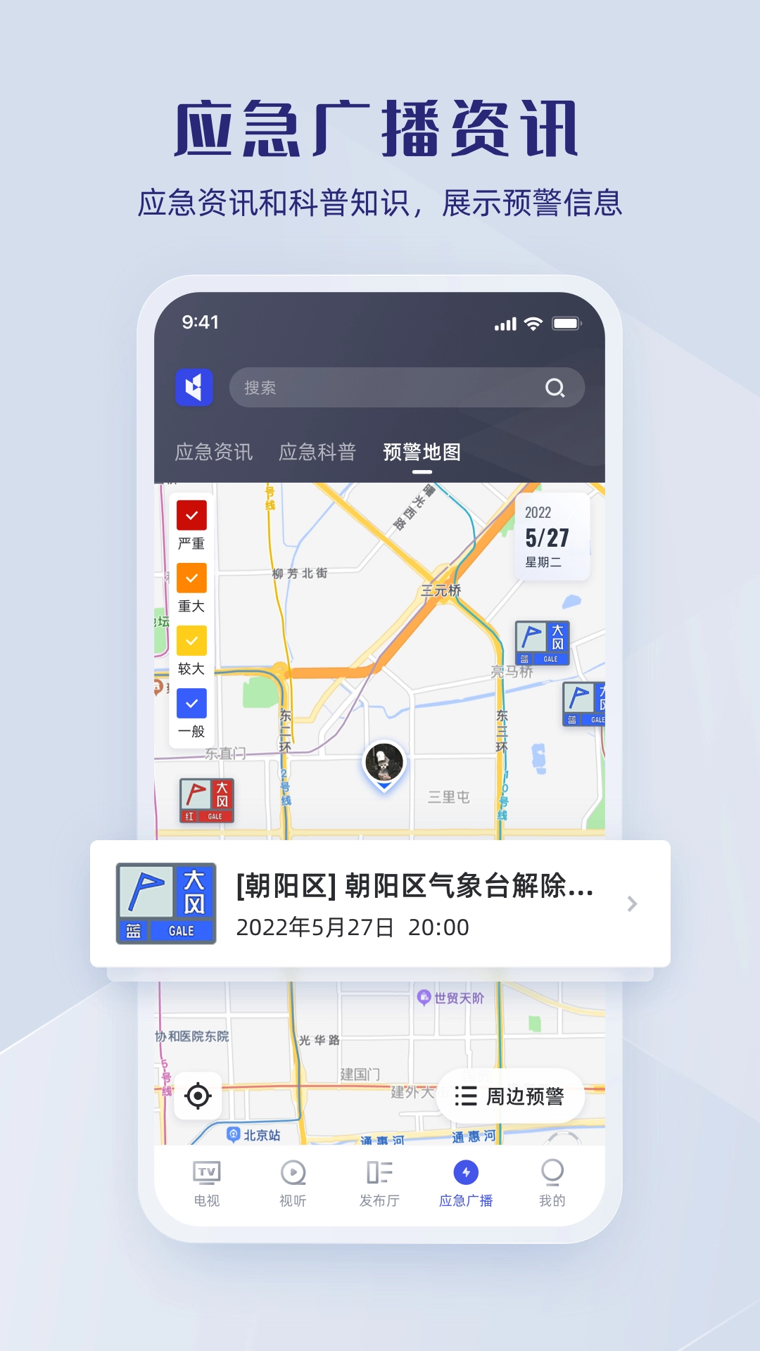 4、发布国家应急广播相关系统内容,提供应急资讯、科普信息以及预警地图。