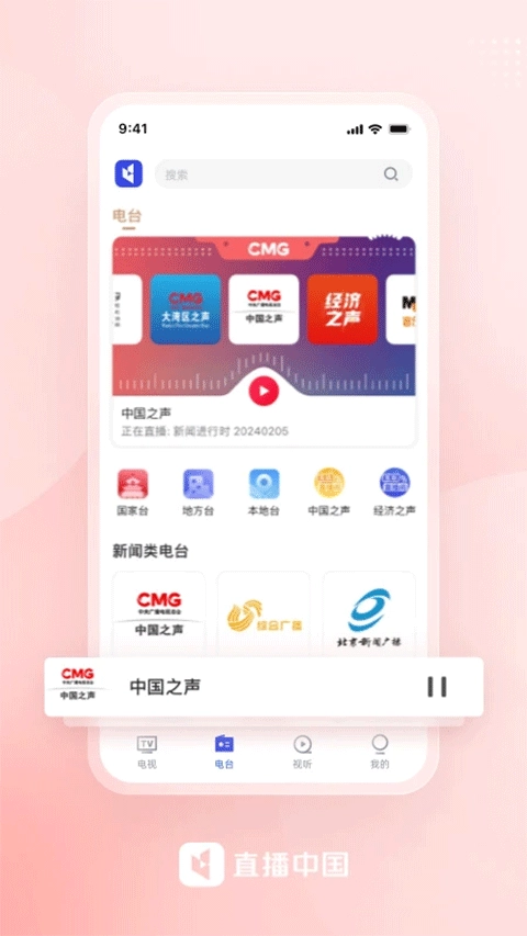由中国广电5G融合视听服务平台打造的移动端内容客户端“直播中国”,向用户提供电视频道、广播电台、影视少儿、网络视听等媒体融合方面的全新服务。