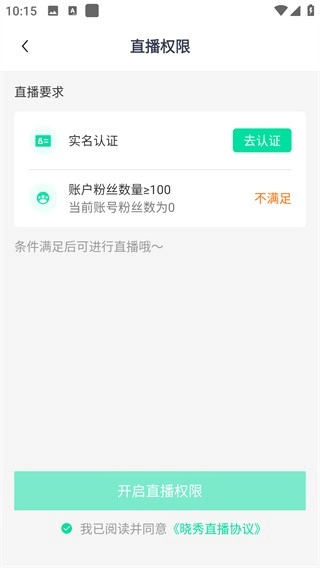 4、轻点右下角的“开直播”选项;随即,便能看到关于开直播的要求与限制。若自身条件符合这些规定,点击“开启直播权限”,即可顺利开启直播。
