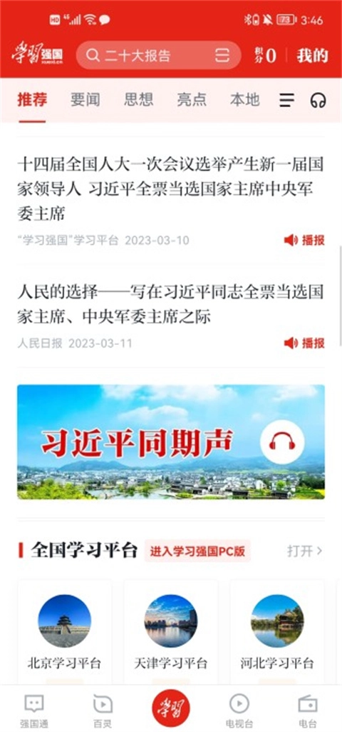 强国平台集可看、可刷、可听于一体,多功能还免费的海量学习内容,只要拥有强国平台,可以说就相当于拥有了一个随身听、若干个电台客户端,真正实现了每天让你足不出户,便知天下事。