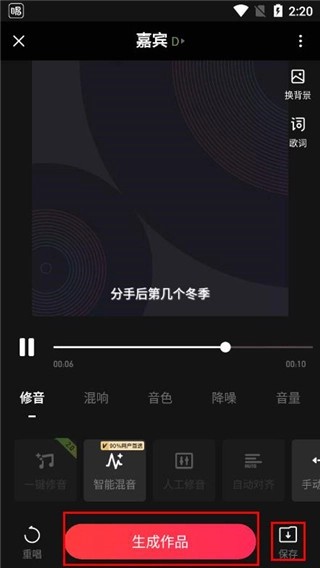 6、演唱完毕后,可直接生成作品,也能一键进行保存。