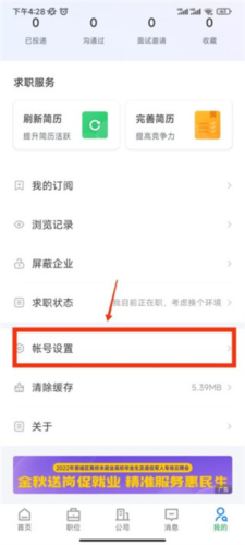 2. 在“我的”页面里,找到底部的账号设置,然后点击进入。