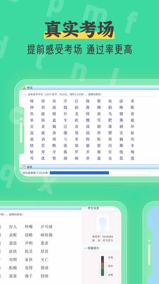 高仿真的模拟考试界面,严格依据《普通话水平测试(PSC)大纲》打造,全面覆盖普通话考试的所有题型,而且能够不限次数地开展普通话测试。