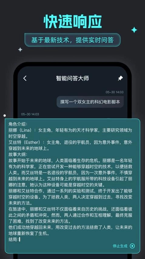 智能问答大师能即刻回应用户的问题与消息,无需漫长等待人工客服的反馈,为您带来即时交流体验。它响应速度超快,用户在这款软件中可享受众多AI功能服务。有需要的朋友,快来使用这款软件吧!