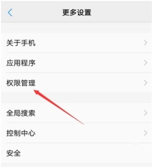 4、接着进入手机的“更多设置”页面,从中选择“权限设置”功能,为应用开启悬浮窗权限,如此便能设置透明壁纸。