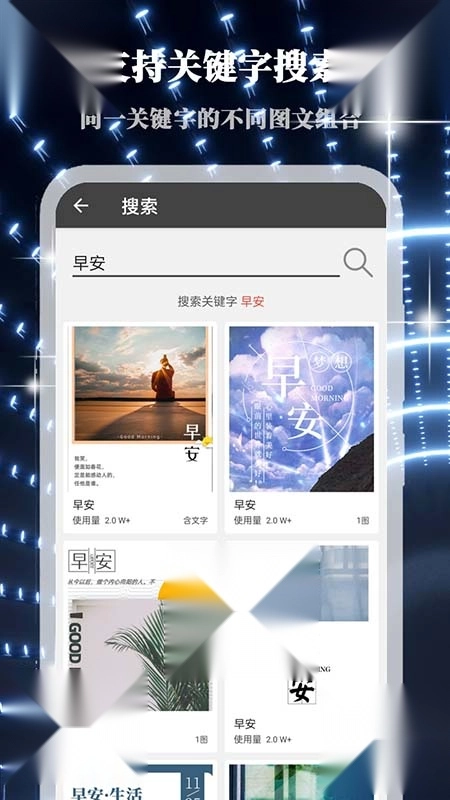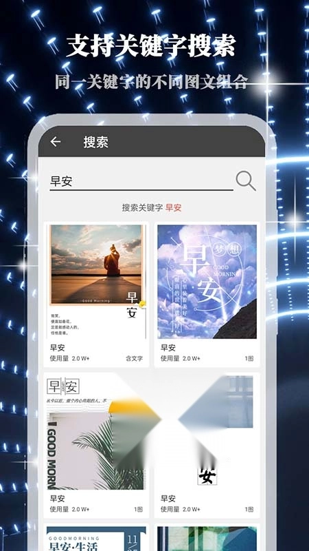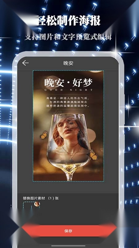2、操作简单,素材丰富,提供自定义添加,在精美图片上添加个性化素材。