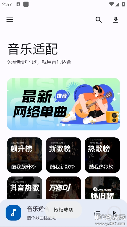 音乐适合是一款音乐播放器软件,它拥有海量歌单,全部免费畅听。在这里,你能轻松聆听各类热门歌曲,海量免费歌曲任你选择,还可依据自身网络状况进行适配。软件支持轻松搜索歌曲,只需输入关键词就能听歌,让你更畅快地免费享受音乐。感兴趣的朋友不妨前来体验一番。
