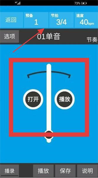2. 在主界面的顶部,找到预备、节拍、速度等控制区域。根据自身需求点击该区域,打开并加载相关内容,接着点击播放进行试听。与此同时,还能够通过顶部的这个控制区域,对预备拍数、节拍类型以及播放速度进行调整。