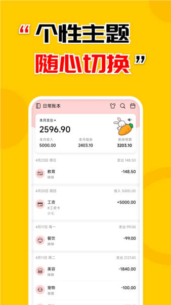 个性化记账本:涵盖日常开销、人情往来、旅行、装修等各类项目,可依据个人消费特性进行自定义分类,并呈现详尽账目。