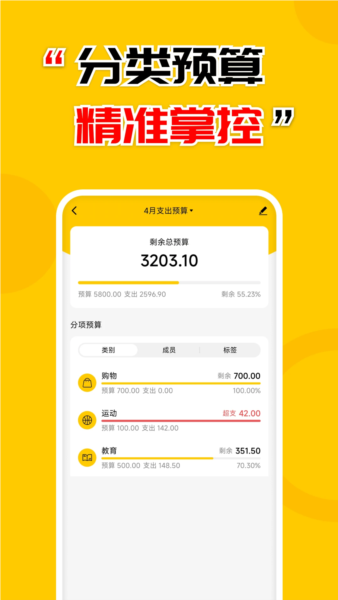 4、分类预算能够契合各类需求,一旦出现超支情况,会及时发出提示,助力控制支出。