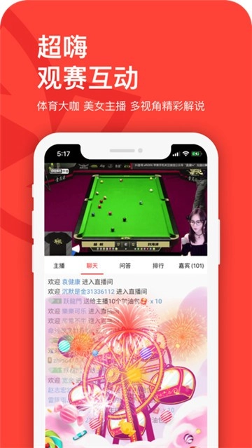 2、数百位风趣专业的主播、体育女神、篮球宝贝为您实时解说赛事,还有百万球友陪你一起聊天吐槽。