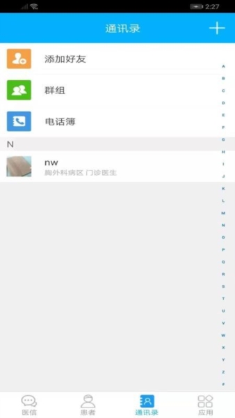 3、应用设有通讯录版块,借助这一板块,用户与同事交流沟通更为轻松便捷,还能一同开展协同会诊。