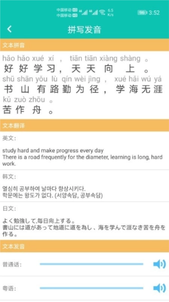 便捷查询汉字、词语、句子以及课文的拼音与声调。