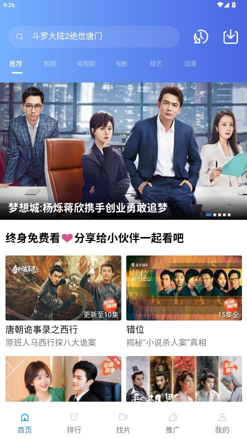 4、供应在线高清电影、免费电视剧以及热门动漫等各类资源,用户可随时进行点播观看。