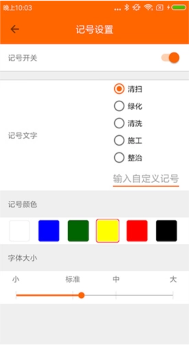 1. 打开界面后,对记号开关、记号文字以及记号颜色进行设置。