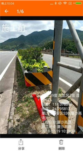2. 增添水印:进行施工标记,记录经纬度、海拔、方位角度、地理位置、天气、工程信息,以及添加自定义备注等。