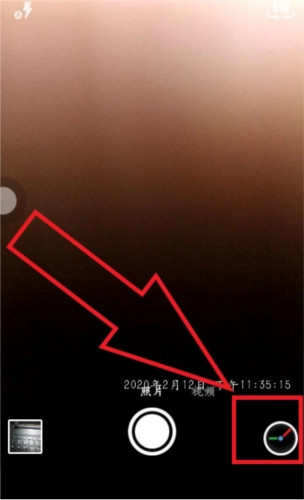 2、接下来,打开【时间相机】,随意选取场景进行拍照。当打开所拍摄的照片时,照片右下角会显示拍照的日期与时间。此时,我们点击右下角的设置按钮,便可对其进行更改。