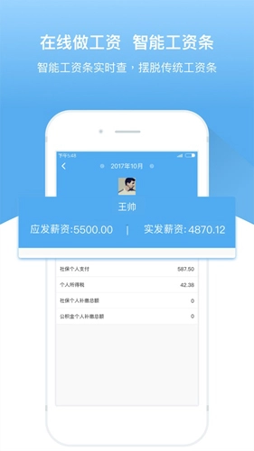 提供在线制作工资功能,配备智能工资条,智能工资条可实时查询,彻底告别传统工资条。