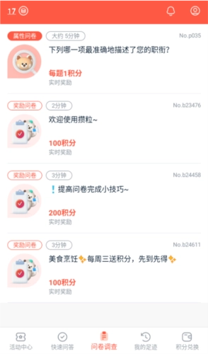 4、实时积分刷新:该应用具备实时积分刷新能力,使您能够即时知晓自身积分的累积状况,从而激励您更踊跃地投身问卷调查,获取更多奖励。