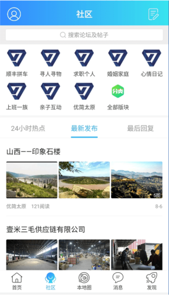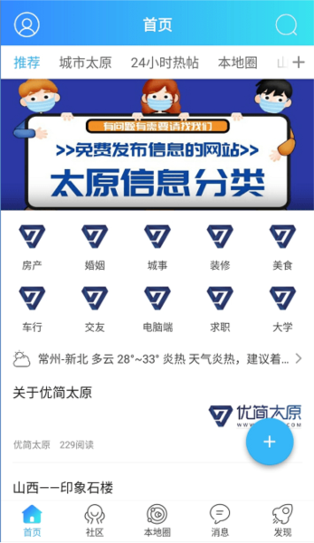 1、多元功能畅享:从社区热门帖子,到首页即时资讯,再到本地圈趣闻分享,优简太原为您打造全方位生活服务。