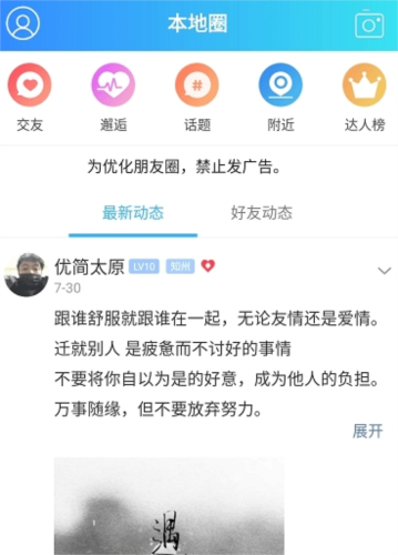 4、为你推出超多交友方式,包括邂逅、话题、附近、达人榜等等。
